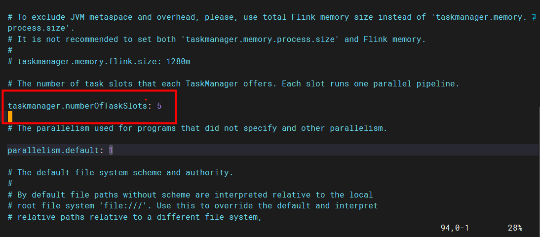 我们可以修改为5,修改taskmanager.numberOfTaskSlots:即可。 :