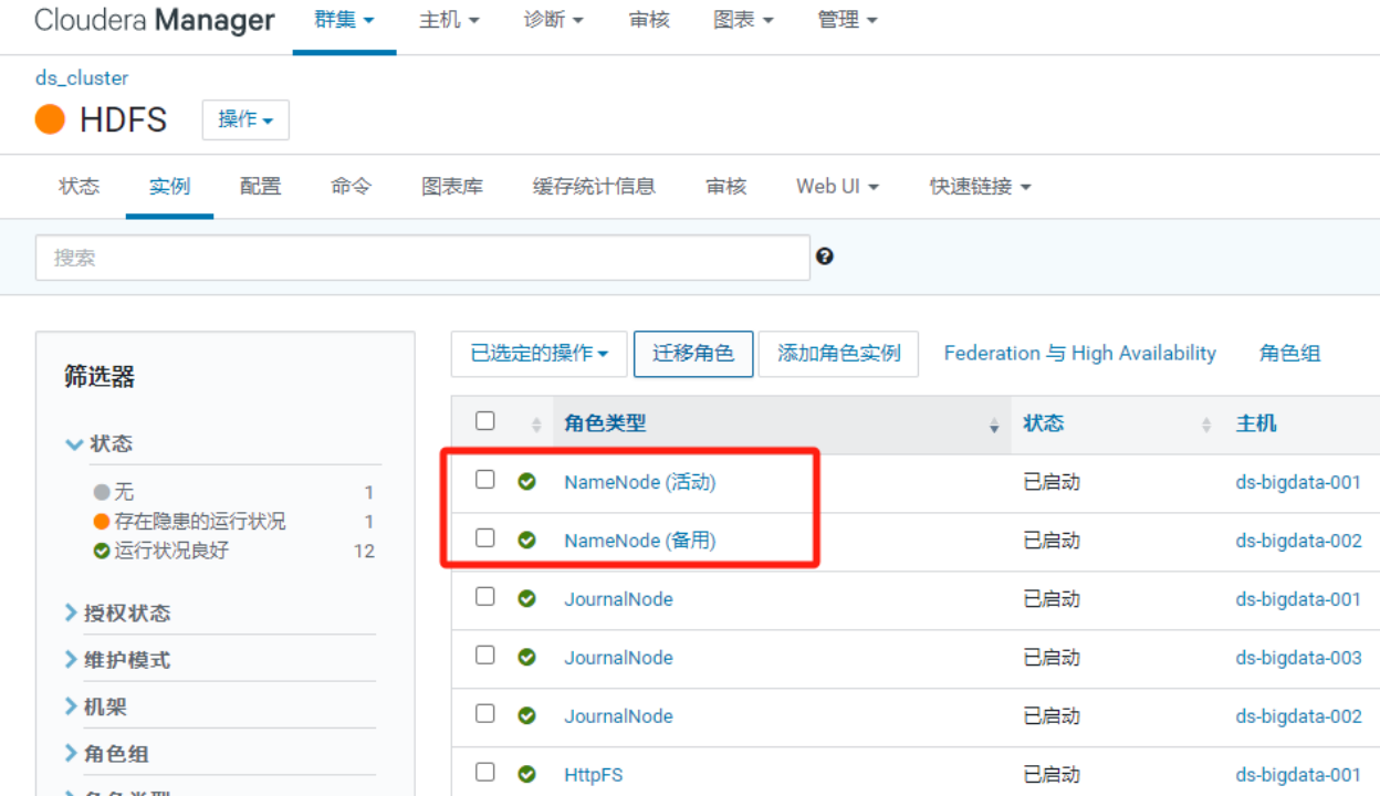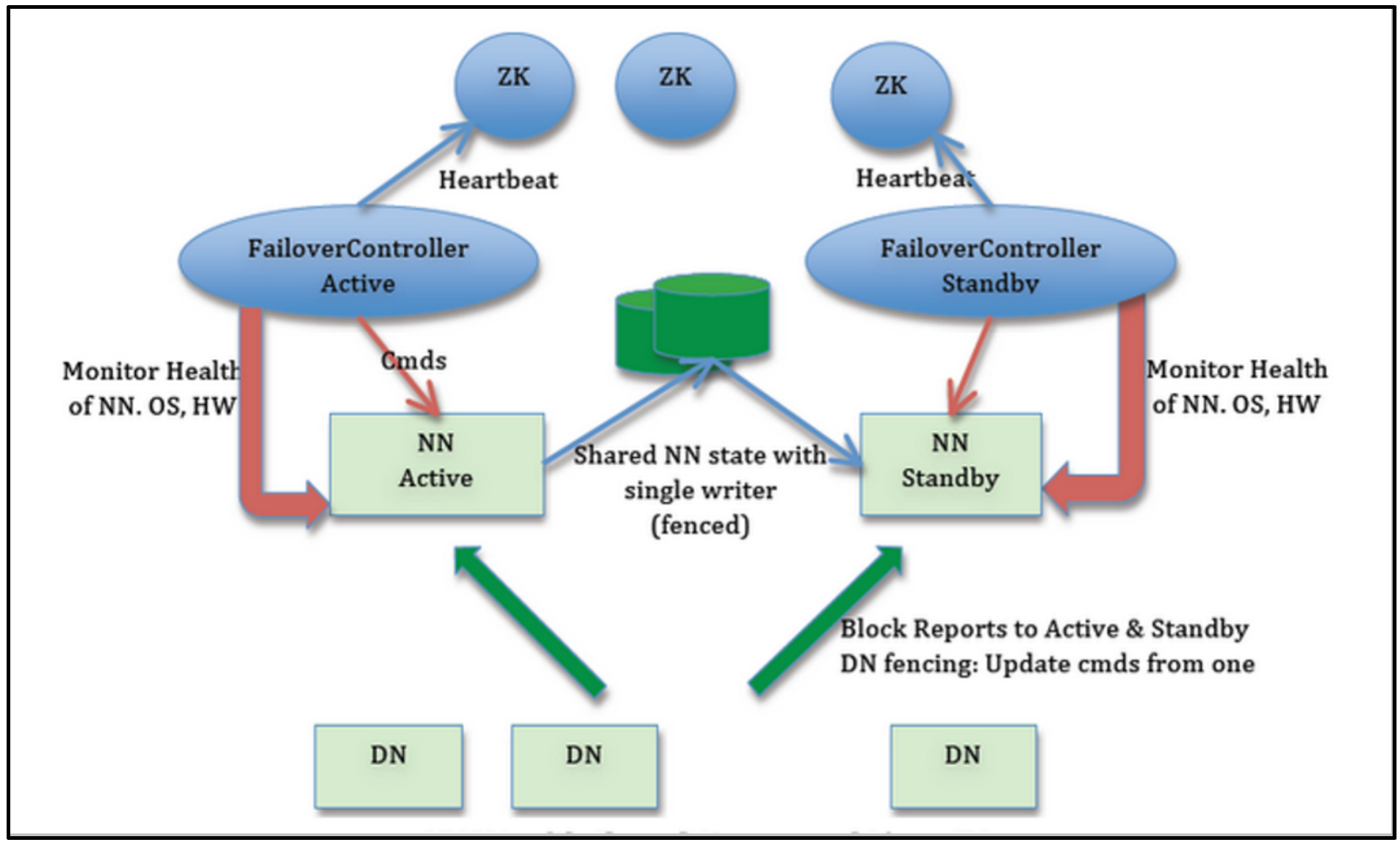 - 两个namenode 之间需要通过高可用共享存储实现编辑日志的共享。当备用 namenode 接管工作之后,它将通读共享编辑日志直至末尾,以实现与活动 namenode 的状态同步,并继续读取由活动 namenode 写入的新条目。