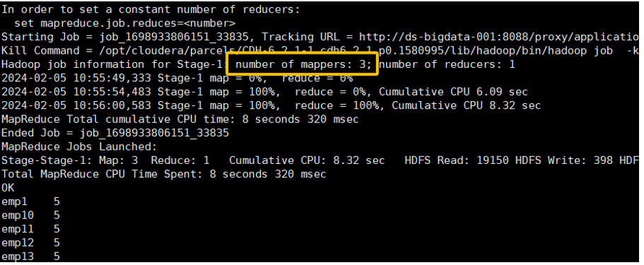 即 N = min(hive.exec.reducers.max, totalInputBytes / hive.exec.reducers.bytes.per.reducer)