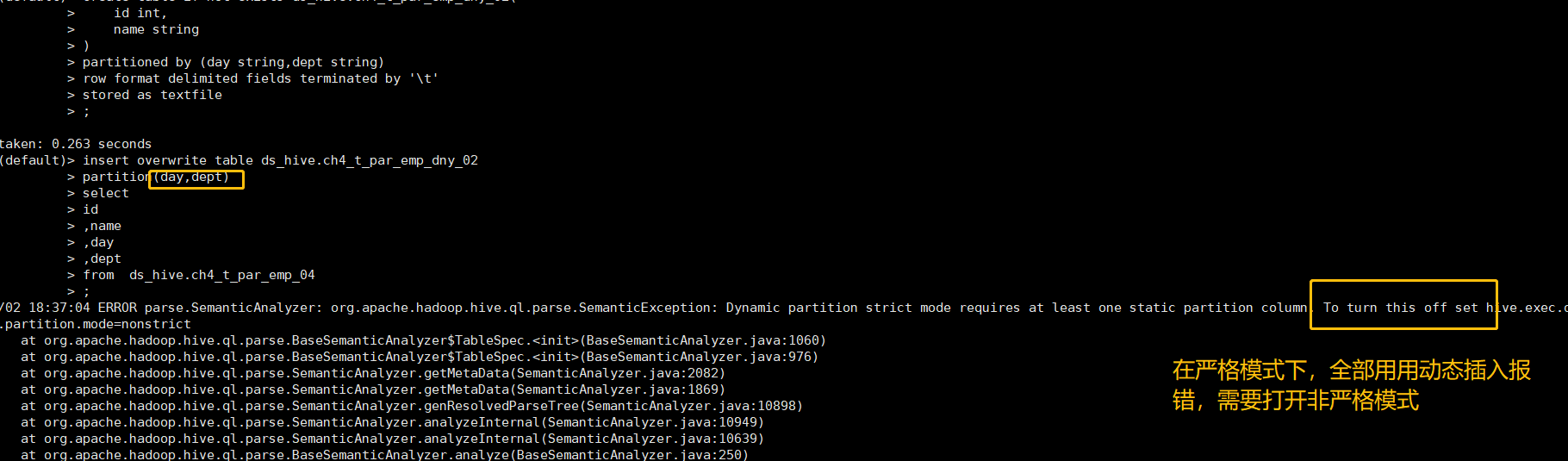 SELECT id, name, dept FROM ds_hive.ch4_t_par_emp_04; - 全动态分区: