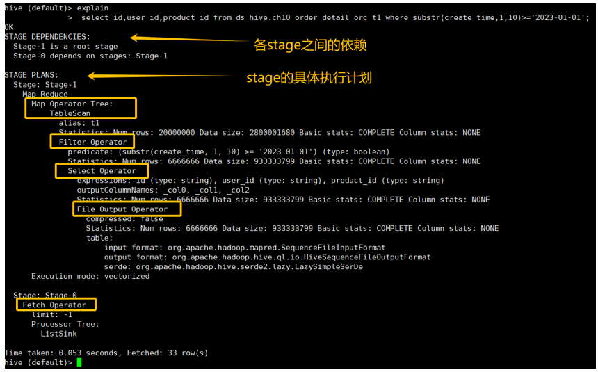 需要注意的是,执行计划是 Hive 根据统计信息所进行的简单描述,并非完全精确的物理执行过程,但它对于理解 SQL 执行细节、发现潜在问题非常有帮助。