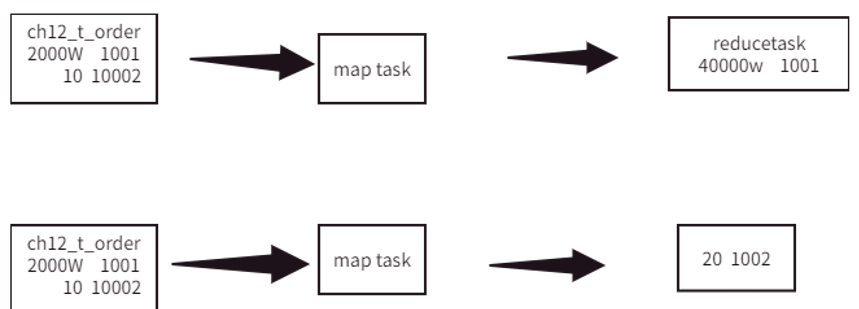 未经优化的join操作,默认是使用common join算法,也就是通过一个MapReduce Job完成计算。Map端负责读取join操作所需表的数据,并按照关联字段进行分区,通过Shuffle,将其发送到Reduce端,相同key的数据在Reduce端完成最终的Join操作。
