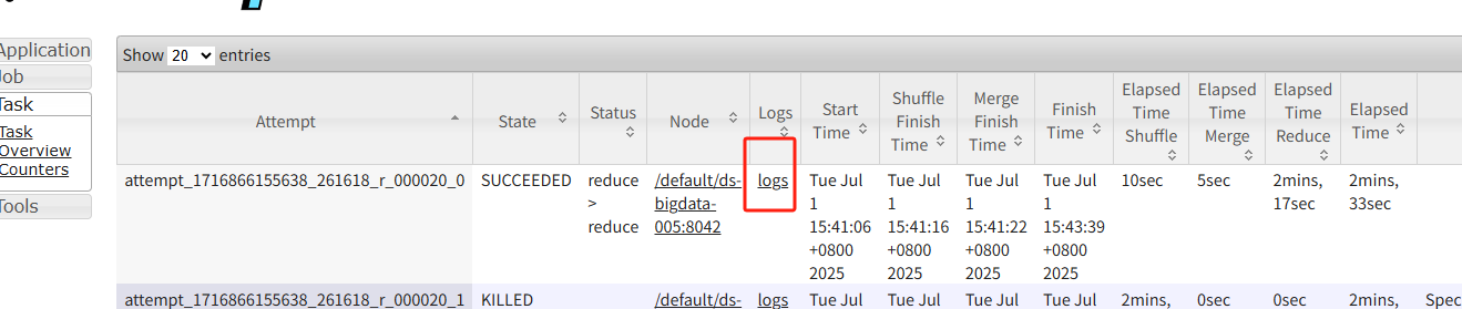 当任务发生倾斜时,可以通过 YARN UI 定位到运行缓慢的 Reduce Task。